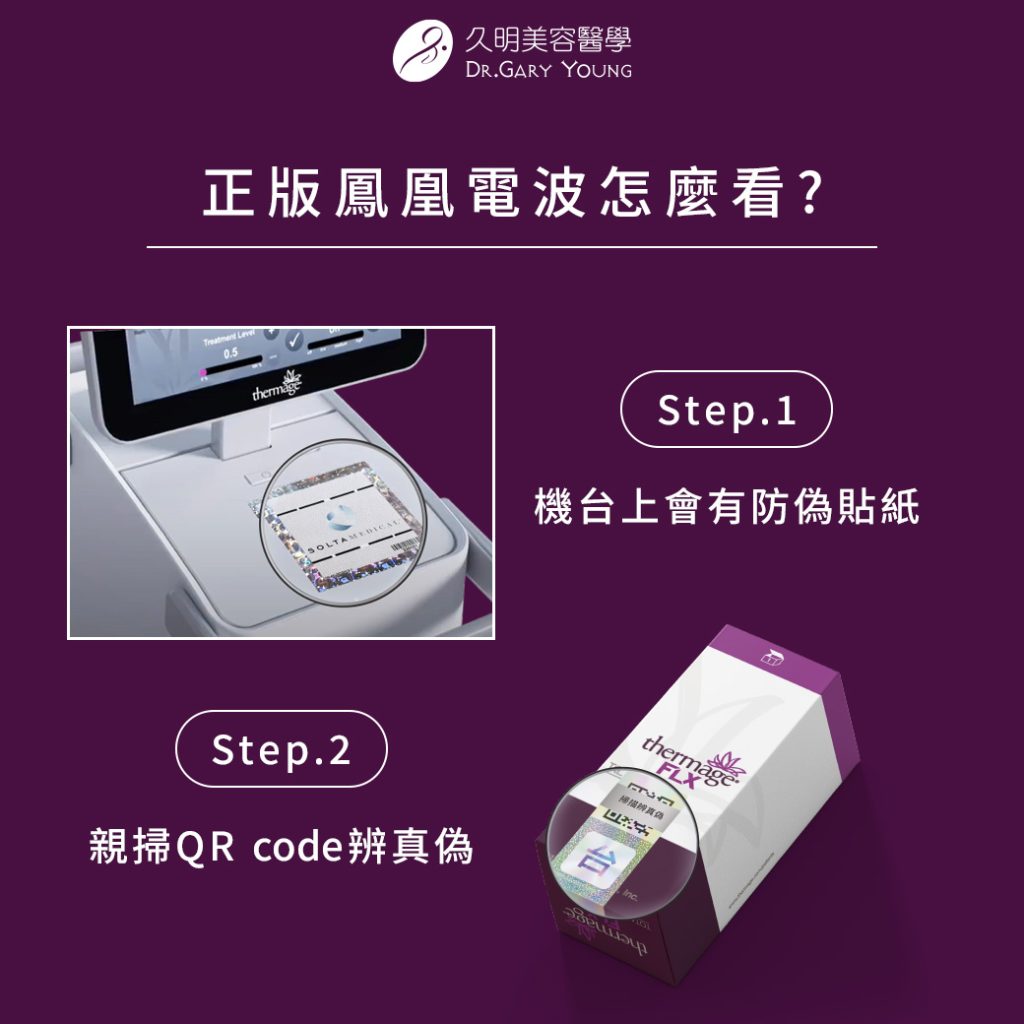 珍愛寶貝肌膚,遠離粗劣的偽造仿冒品,拒絕無良業者的侵害,請一定要認明原廠認證診所「久明診所」,並堅持由旗下原廠認證醫師,為您操作使用原廠「Thermage FLX 鳳凰電波」。