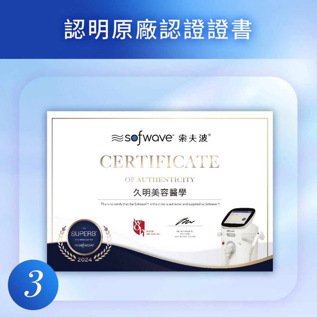 跟著久明診所辨別原廠正貨第 3 步 👉 認明原廠認證證書,由原廠訓練合格專業證書醫師👩⚕️👨⚕️為您操作