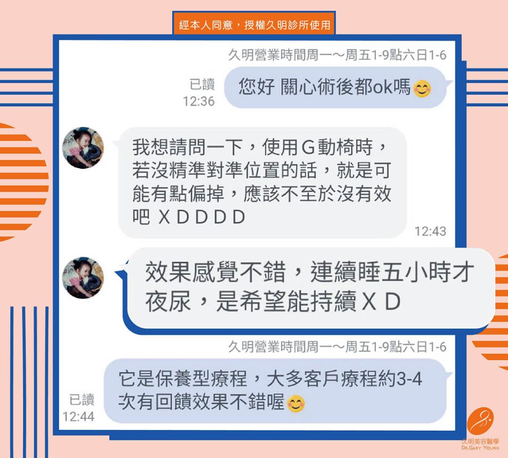 以上都不用擔心喔!骨盆底肌能承托膀胱、子宮、直腸…等重要器官,就像一個盤子橫跨在腹腔裡,整片肌肉面積不算小,治療椅啟動後,聚焦電磁是在整塊肌肉上循環,達到鍛練骨盆底肌自主縮~放~縮~放的目的,只要依照衛教師指示,坐姿不要太偏離,都是可以對準的喔!