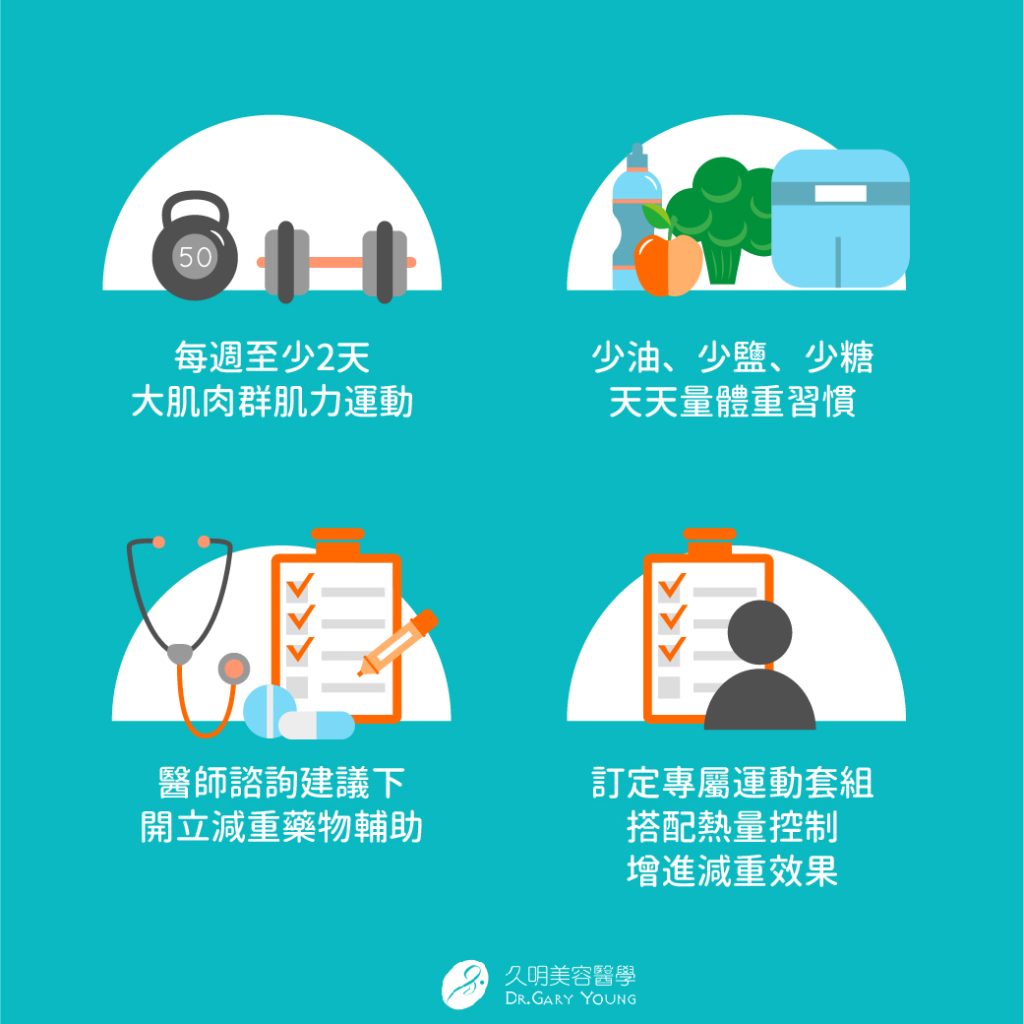 ✅飲食上少油、少鹽、少糖、養成天天量體重習慣