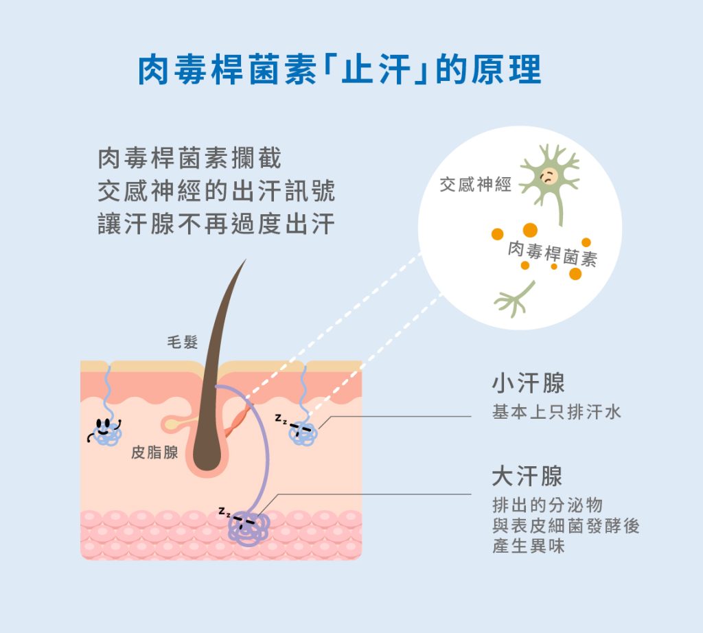 每到夏天,腋下除了黏、濕、不舒服,還容易有味道,甚至不敢穿淺色衣服了!這時候「肉毒止汗」就是方便又省力的解法。