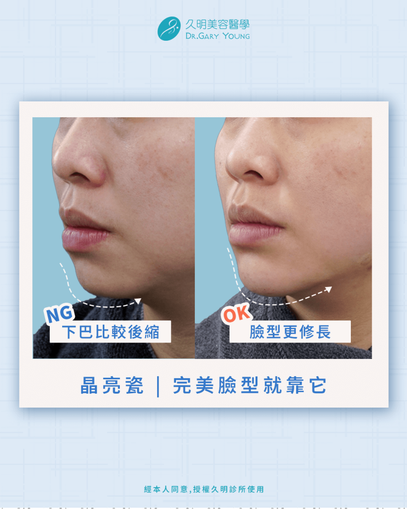 晶亮瓷的應用範圍廣,可以用在下巴、額頭、蘋果肌,雕塑下顎線、改善法令紋..等等,所以也有人叫它再生針