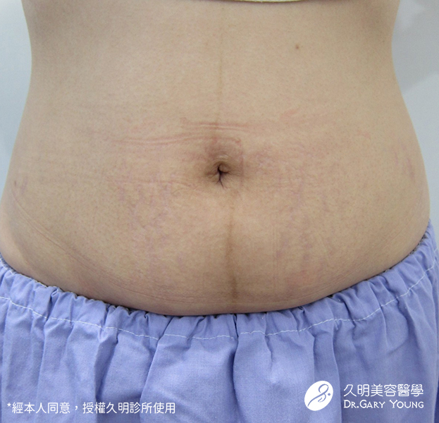 我是曉媛~身為七年級的輕熟水媽咪,會走進久明診所諮詢,主要是為了我肚子上的甜蜜之吻:「 女壬 女辰 紅 紋 」。雖然我就有特別注意,洗澡後一定擦上滋養油,加強按摩整個腹部,就是希望「 女壬 女辰 糹文 」不要找上我~