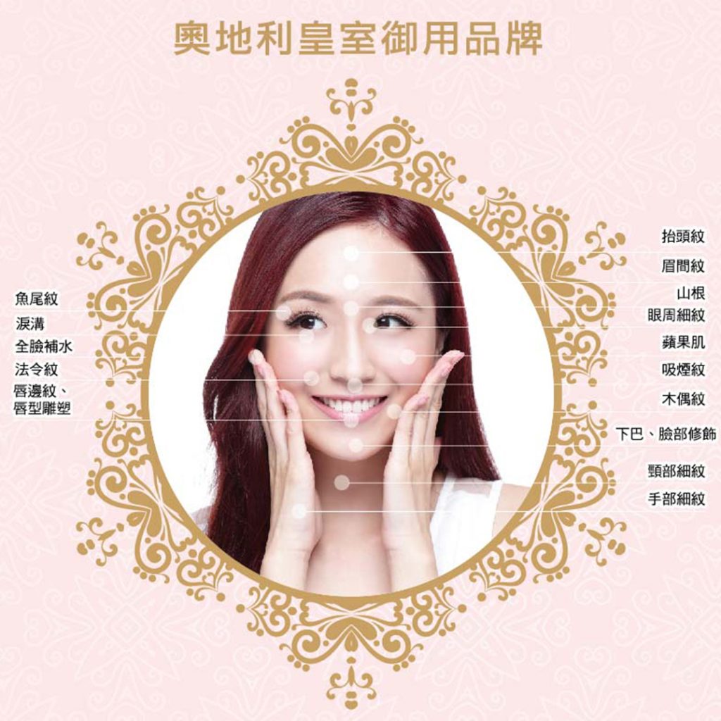 玻尿酸可評估修飾美化木偶紋、皺紋、疤痕、脖紋、淚溝凹陷、眼周細紋、臥蠶、雙唇、手背、耳珠耳垂、胸型。